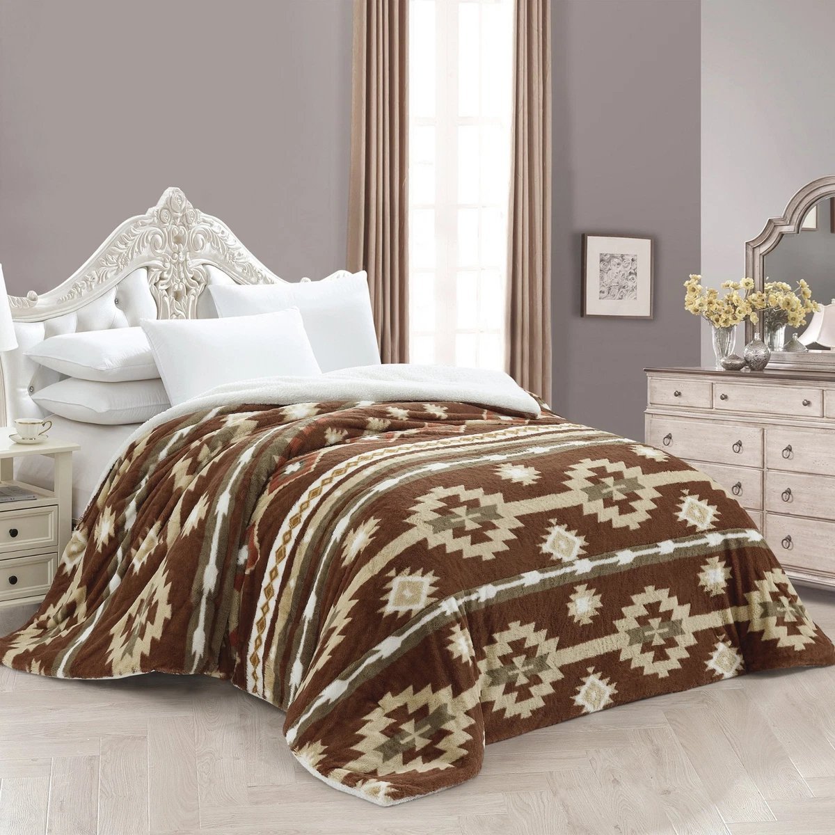 الفخامة الإسبانية في بيتك! طقم 3 قطع (بطانية + 2 كيس خدادية 50*70) بخامة ناعمة جداً وجودة ممتازة، بتجمع بين الشياكة والتدفئة اللي محتاجاها طول الشتاء.
